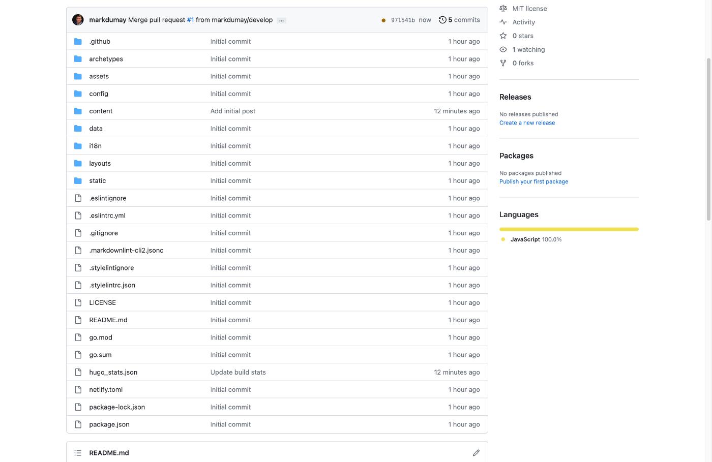 You have now successfully created your initial Hinode site with version control and automated updates. You can look into the guide to automate the dependency upgrades using GitHub actions. Review the hosting and deployment options to see various options on how to (automatically) publish your site to a hosting provider.